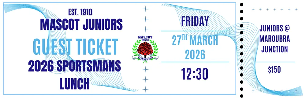 Join us as we officially launch the 2026 season with a fantastic afternoon celebrating Mascot Juniors RLFC. This special event includes a delicious two‑course meal and a four‑hour drink package, making it the perfect opportunity to enjoy great company, great food, and great stories from the world of rugby league.